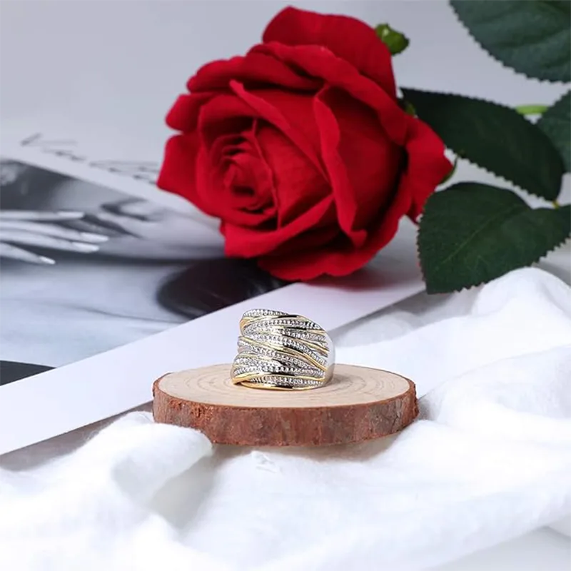 질감이 있고 매끄러운 표면 처리: 은색 부분은 질감이 높고 금색 부분은 매끄러워졌습니다. 합금 여성 패션 반지는 시각적으로나 촉각적으로 역동적인 대비 효과를 만들어내며 수많은 반지들 사이에서 단연 돋보입니다.