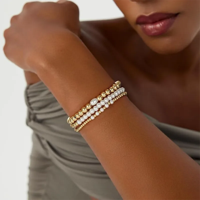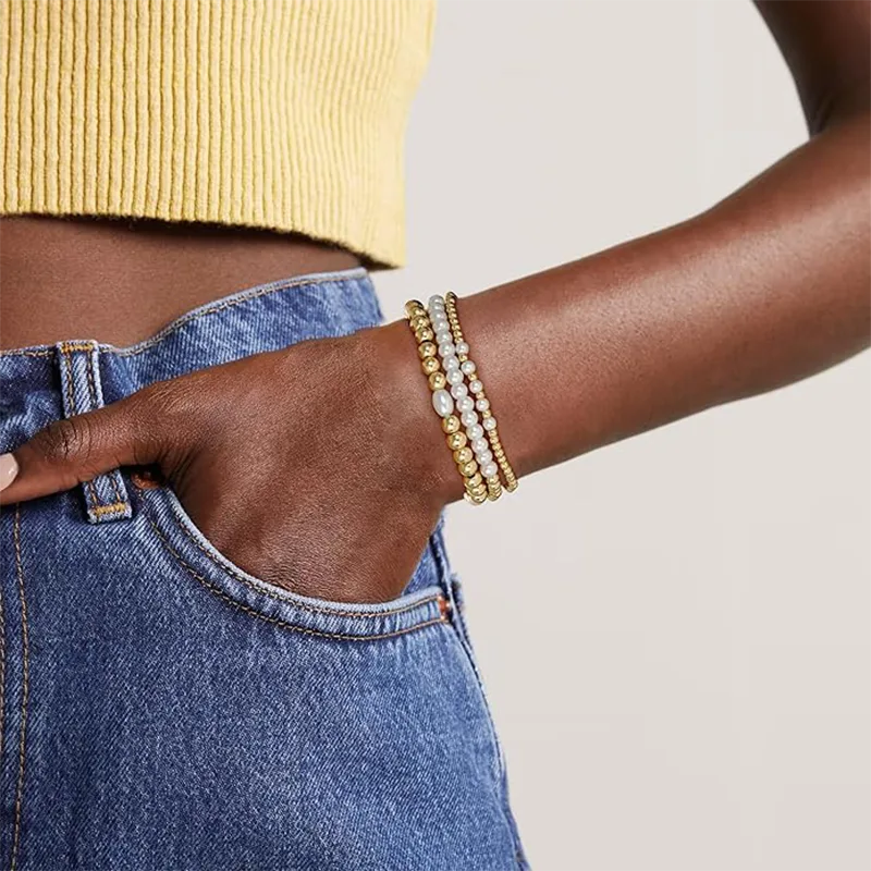 Yd Jewel에서 맞춤형 진주 여성용 비즈 팔찌를 구입하셔도 안심하실 수 있습니다. 여기에는 겹쳐서 사용할 수 있는 세련된 금 팔찌 3개가 포함되어 있습니다. 각 금 팔찌는 단독으로 착용하거나 쌍으로 착용하거나 다른 팔찌와 결합하여 착용할 수 있습니다. 우리는 귀하와 협력하기를 기대합니다.