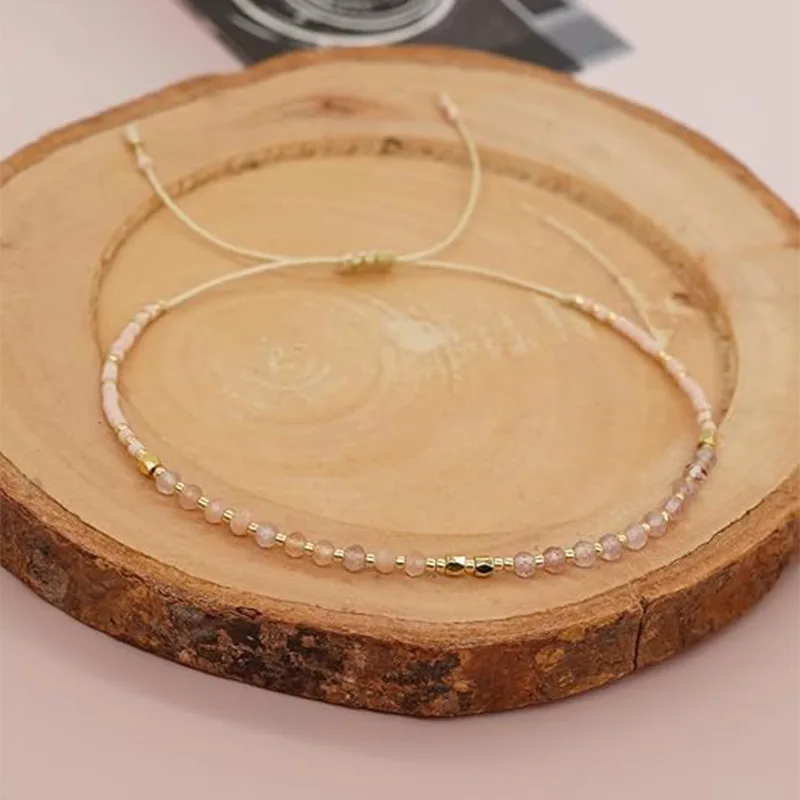 끈 여성용 작은 구슬 팔찌는 천연 준보석으로 만든 팔찌입니다. 이 돌은 우리가 신중하게 선택했으며 독특한 패턴, 색상 및 에너지를 특징으로 합니다. 안심하고 착용해주세요.