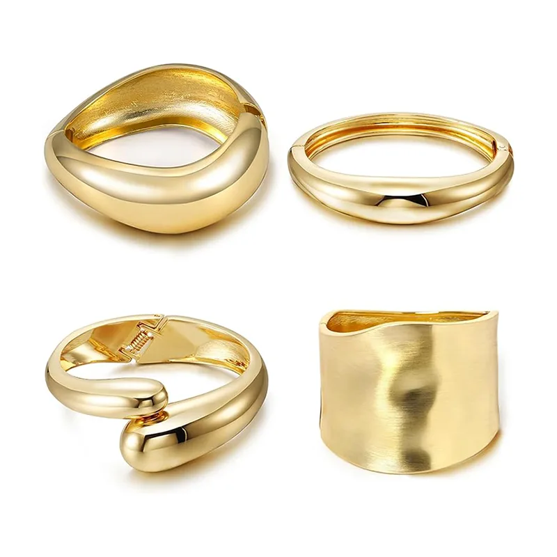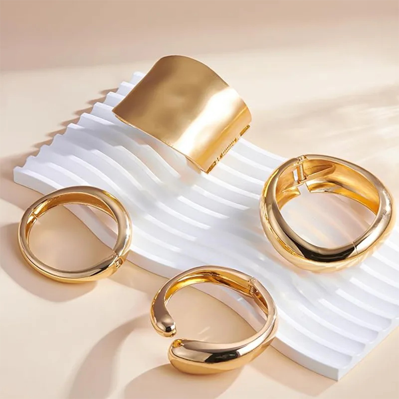 여성용 일일 합금 팔찌는 네 가지 단순하고 견고한 스타일로 제공됩니다. 패셔너블한 황금색 눈물방울 모양 팔찌, 넓은 팔찌, 견고한 팔찌, 황금색 불규칙 팔찌를 모두 사용할 수 있어 다양한 요구 사항을 완벽하게 충족합니다.