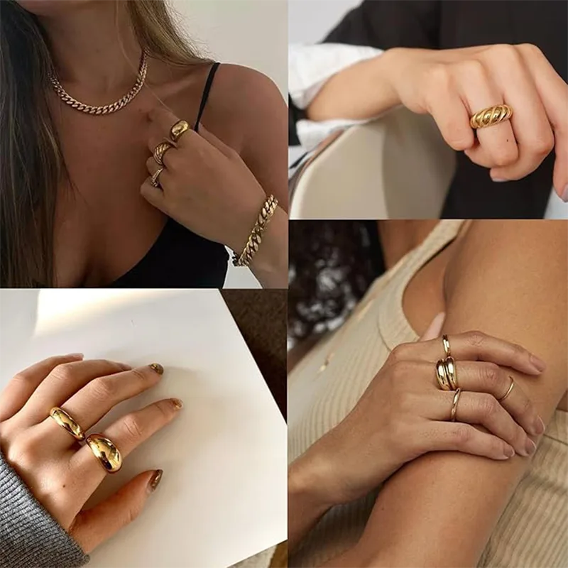 천연 알레르기 프리 소재: 과장되게 두꺼운 링은 황동으로 제작되었으며 18K 골드로 도금되었습니다. 납이나 니켈이 포함되어 있지 않으며 신체에 무해합니다. 컬러가 오래 지속되어 오랫동안 착용해도 편안합니다. 표면이 고광택 처리되어 손가락이 긁힐 염려가 없습니다.